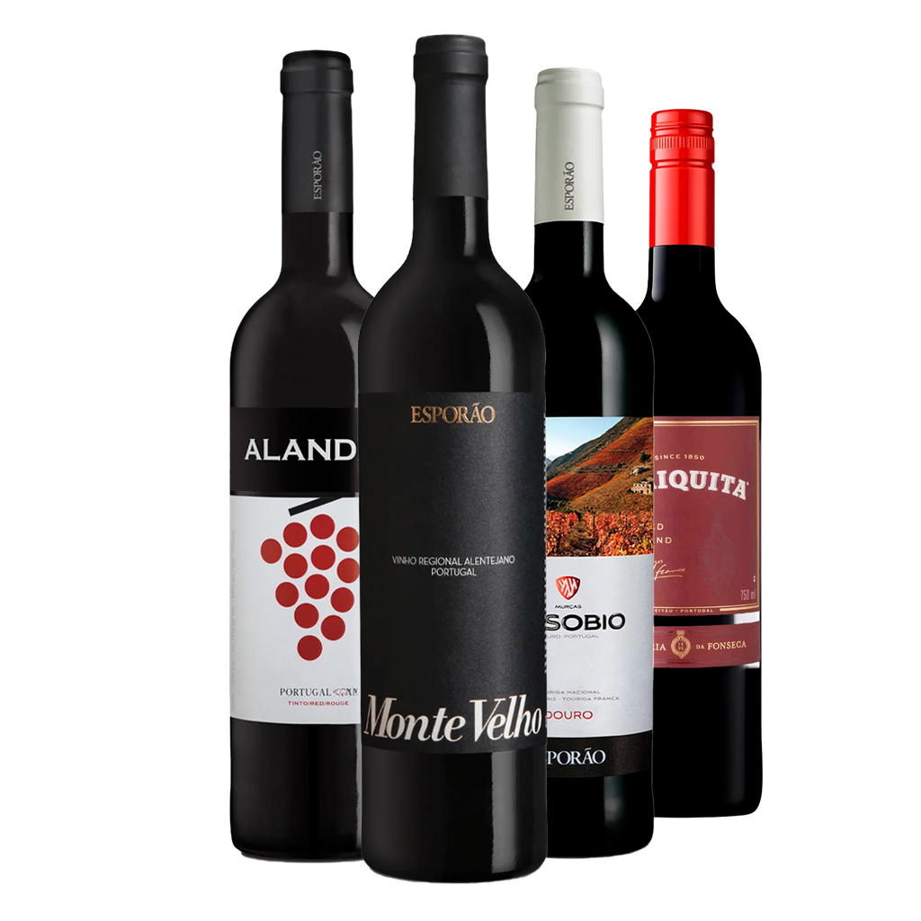 O Kit Coleção Países: Portugal reúne quatro tintos que representam diferentes estilos e regiões vinícolas portuguesas, todos da tradicional vinícola Esporão e da histórica José Maria da Fonseca. O Esporão Monte Velho Tinto é equilibrado e moderno, com frutas maduras e taninos macios, ideal para acompanhar refeições. O Assobio Douro Tinto, do Douro, combina frescor e estrutura, com notas de frutas silvestres e toques minerais. Já o Alandra Tinto é leve e versátil, ótimo para o dia a dia, com perfil frutado e fácil de agradar. Fechando o kit, o Periquita Red Blend, um dos rótulos mais clássicos do país, entrega corpo médio, acidez equilibrada e sabor que combina tradição e acessibilidade. Um passeio pelos sabores de Portugal, perfeito para explorar a riqueza do Velho Mundo.