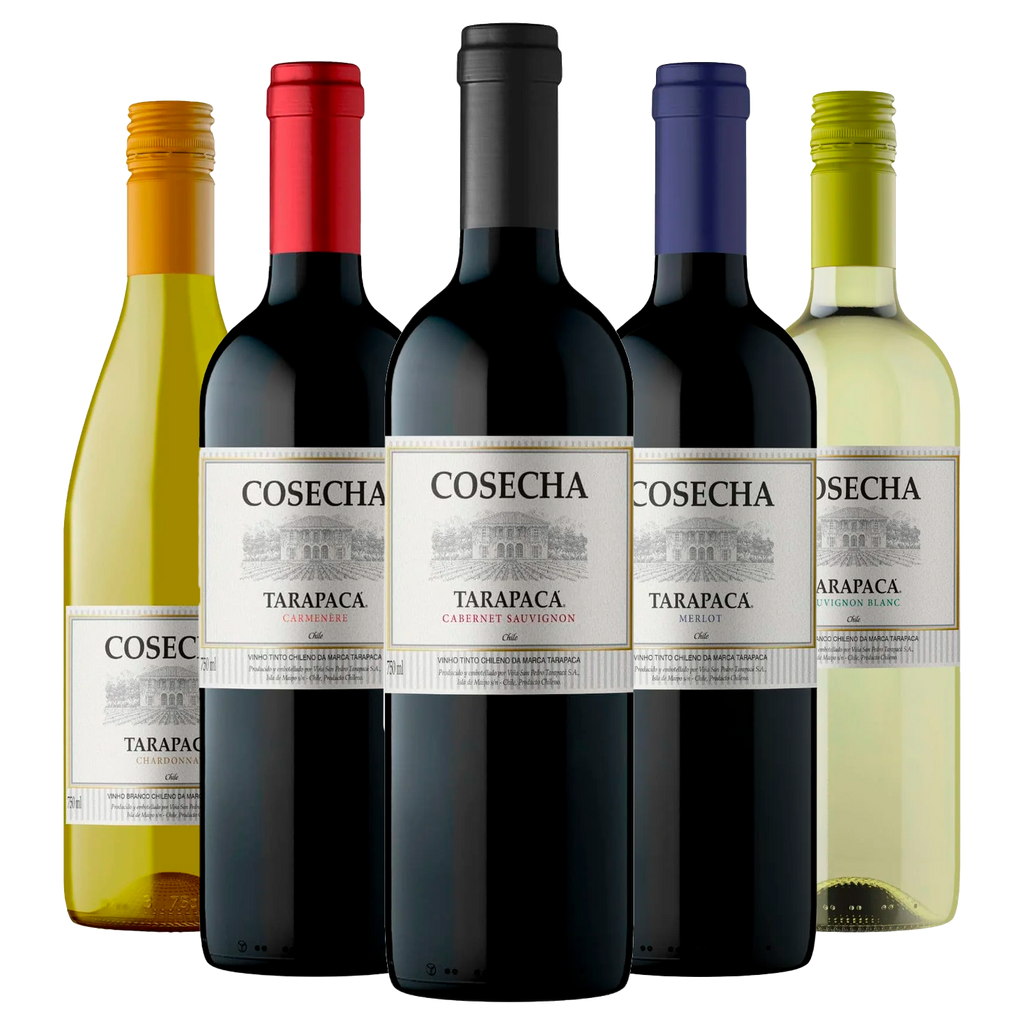 Este kit reúne cinco vinhos da linha Cosecha da Viña Tarapacá, no Chile, ideal para quem busca variedade e versatilidade em rótulos acessíveis e agradáveis. Nos tintos, o Cabernet Sauvignon apresenta corpo médio, taninos macios e notas de frutas vermelhas maduras; o Carménère traz aromas de ameixa, especiarias e leve toque herbáceo, com textura suave; já o Merlot entrega um perfil redondo e frutado, fácil de harmonizar. Nos brancos, o Chardonnay equilibra frutas tropicais e leve cremosidade, enquanto o Sauvignon Blanc é fresco, com notas cítricas e final leve. Uma seleção completa para diferentes momentos e paladares.