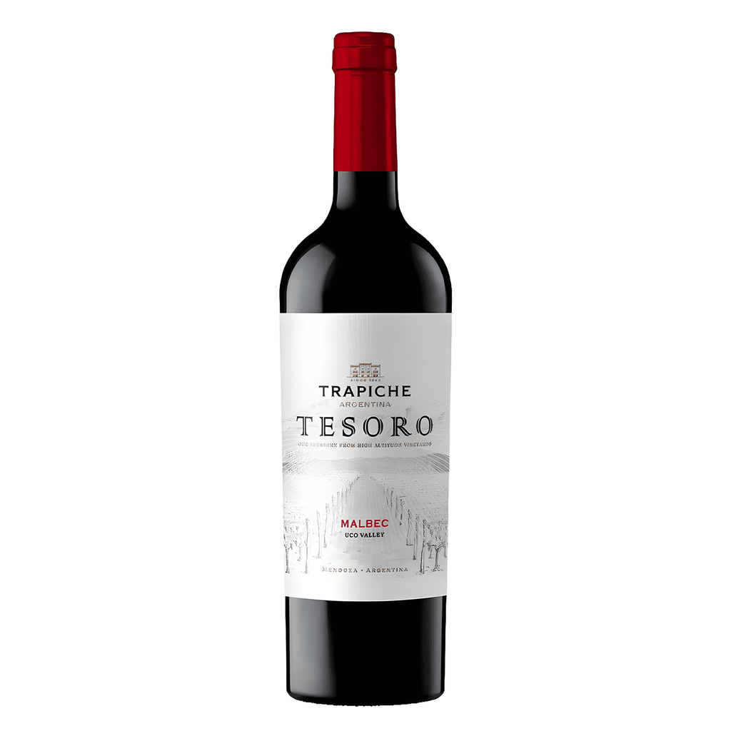 O Trapiche Tesoro Malbec é um vinho tinto argentino produzido na região do Valle do Uco, Mendoza. Este vinho apresenta uma cor vermelho rubi intenso com reflexos violáceos. No paladar, é de médio corpo a encorpado, com taninos suaves e acidez equilibrada, proporcionando um final agradável e persistente. Aromas de frutas negras, como amora e ameixa, se combinam com toques de especiarias e baunilha, criando uma experiência sensorial rica e complexa. Ideal para harmonizar com cortes de parrilla, empanadas, carnes vermelhas assadas e queijos semi duros.